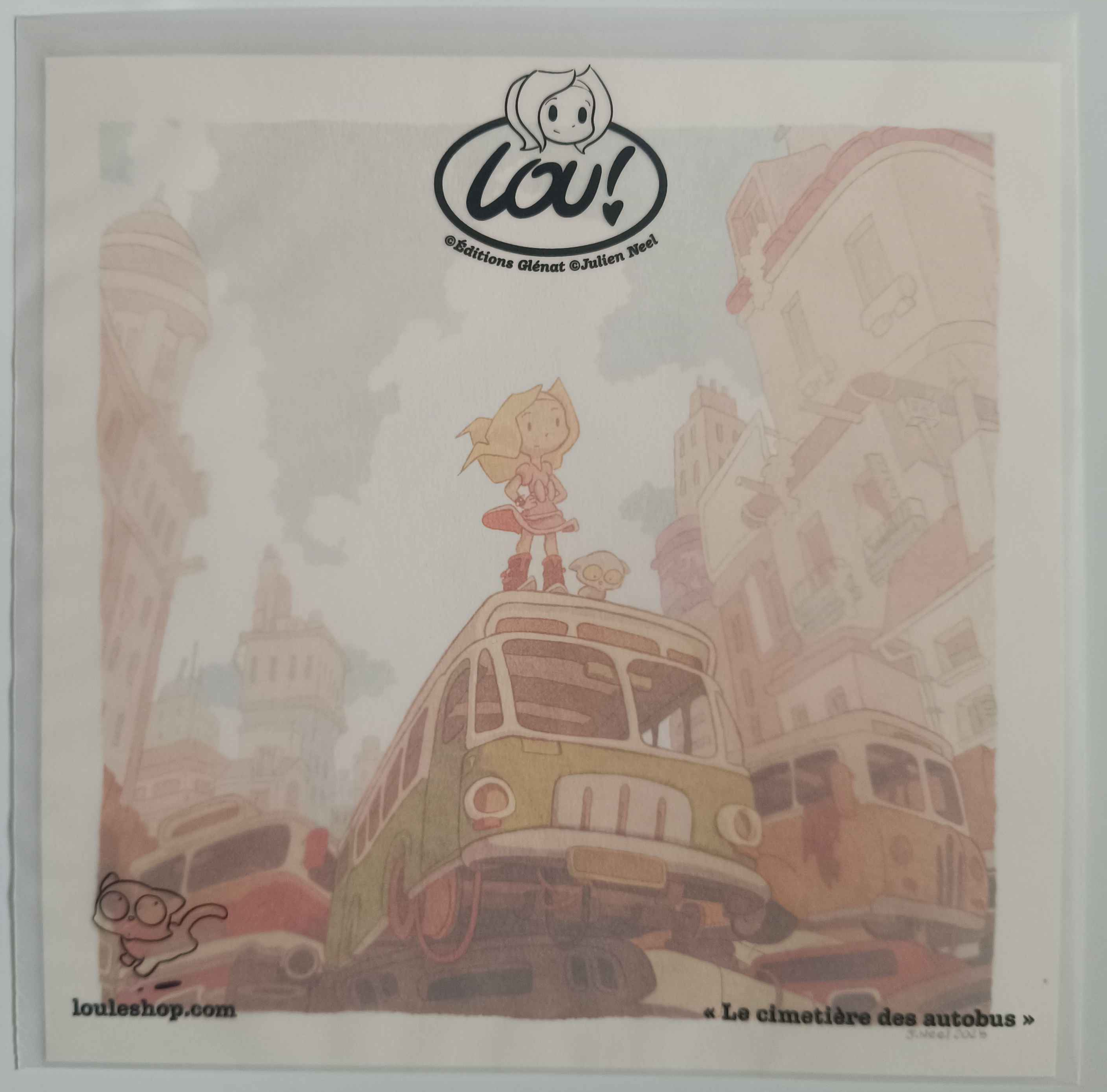 Notes : Imprimée sur papier texturé 320g, taille 21x21cm, vendu avec un emballage semi transparent avec impression.